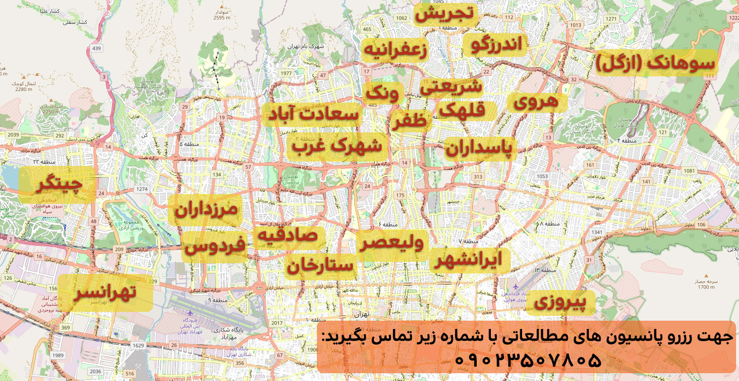📍 آدرس: (شمال تهران) تجریش، شریعتی 💡 برای مشاهده اطلاعات این پانسیون بر روی تصویر بالا کلیک کنید